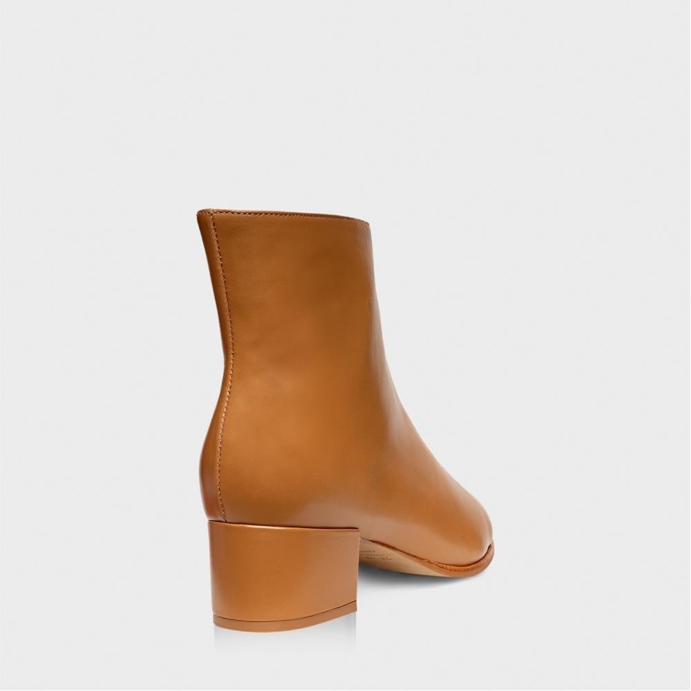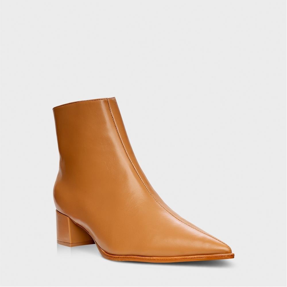 Bota lisa de couro. Possui bico fino, cano baixo e salto baixo bloco. Fechamento em zíper. Com palmilha da cor do modelo. Salto bloco 4,3 cm. FEITO EM COURO LEGÍTIMO.