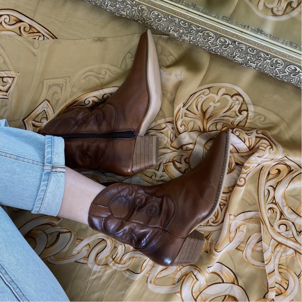 Bota Western Couro de Cabra Cano Curto. Salto 4cm.
