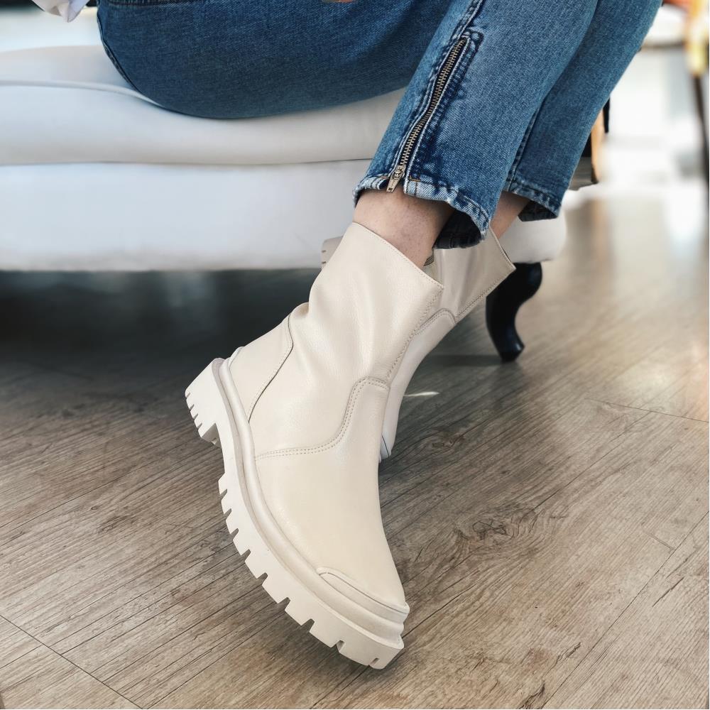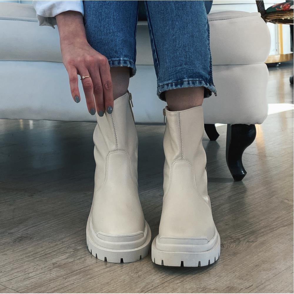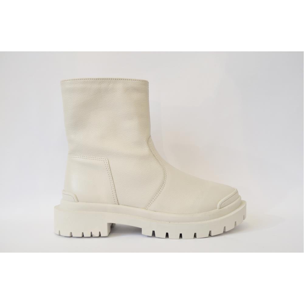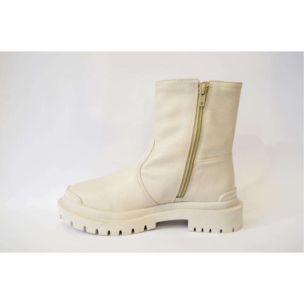 Coturno liso em couro. Solado tratorado salto 3 cm. Com zíper na lateral interna. Cor: Off White