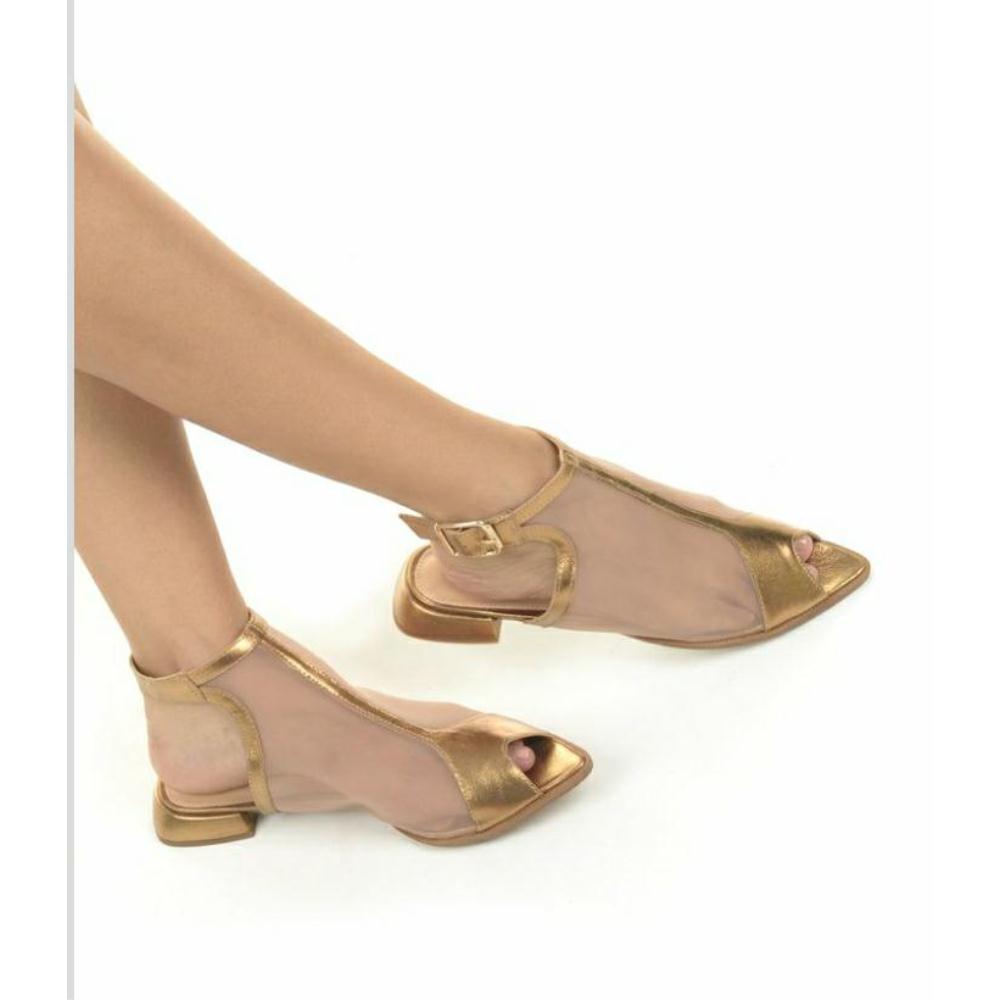 O match perfeito entre a tela mesh e o modelo bico folha cria uma flat incrível, que se destaca pelo tom metalizado bronze!