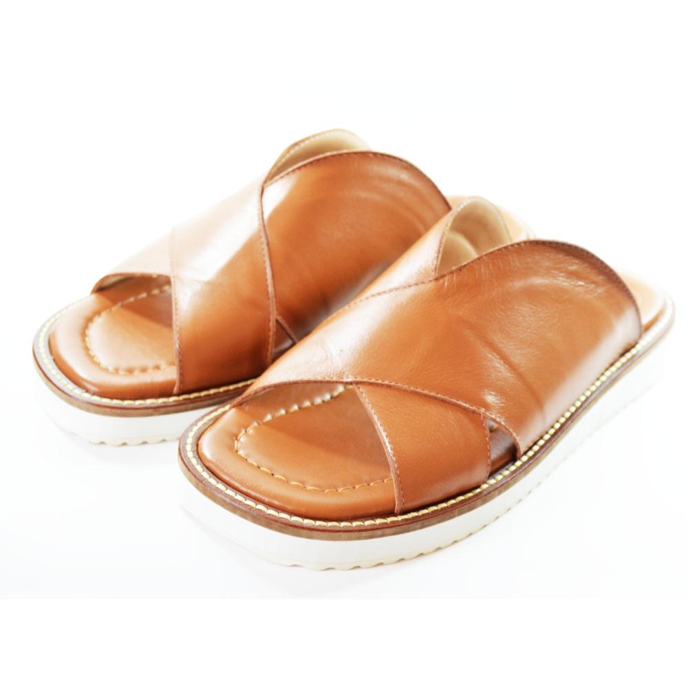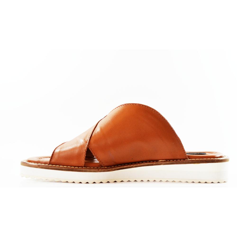 Rasteira solado plataforma 1cm. Extruturada com tiras grossas. Cor Ambar.