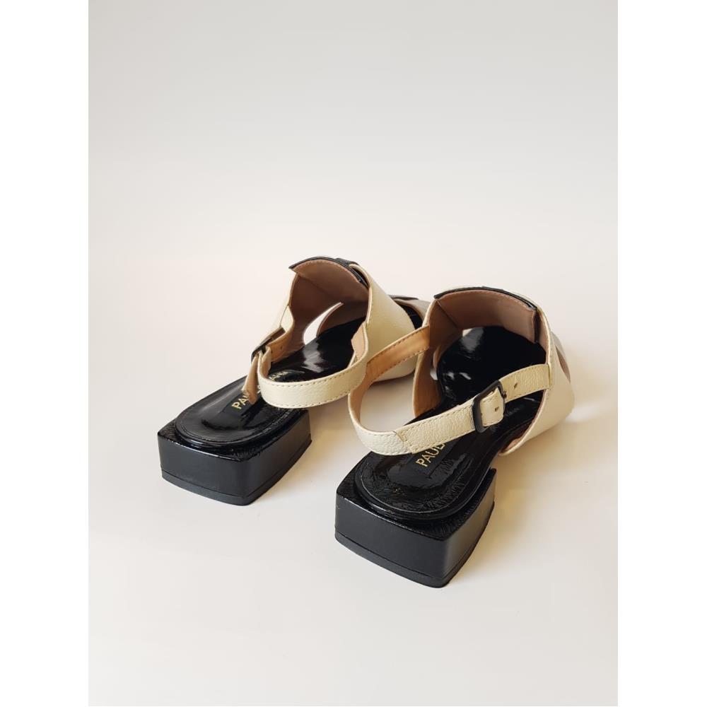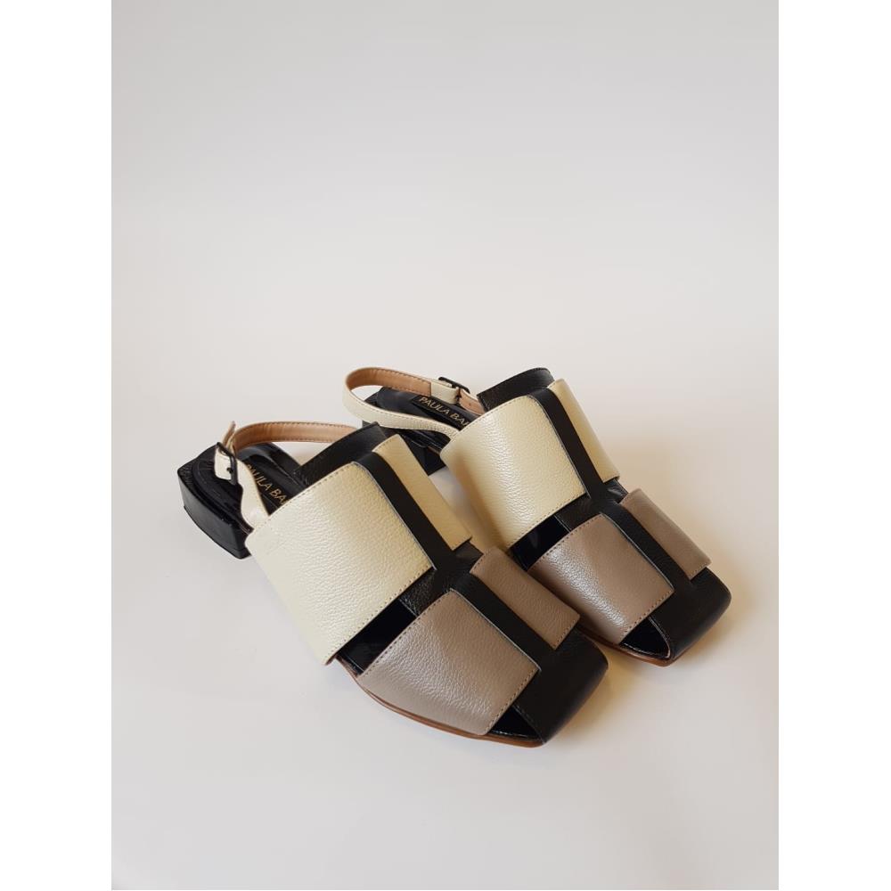 Sandália em couro muito macio, tiras grossas e salto em madeira 3cm. Estilo chanel com abertura atrás. Modelo exclusivo para Red Shoes, da marca Paula Bahia. Cores: Preto, gelo e Fendi.