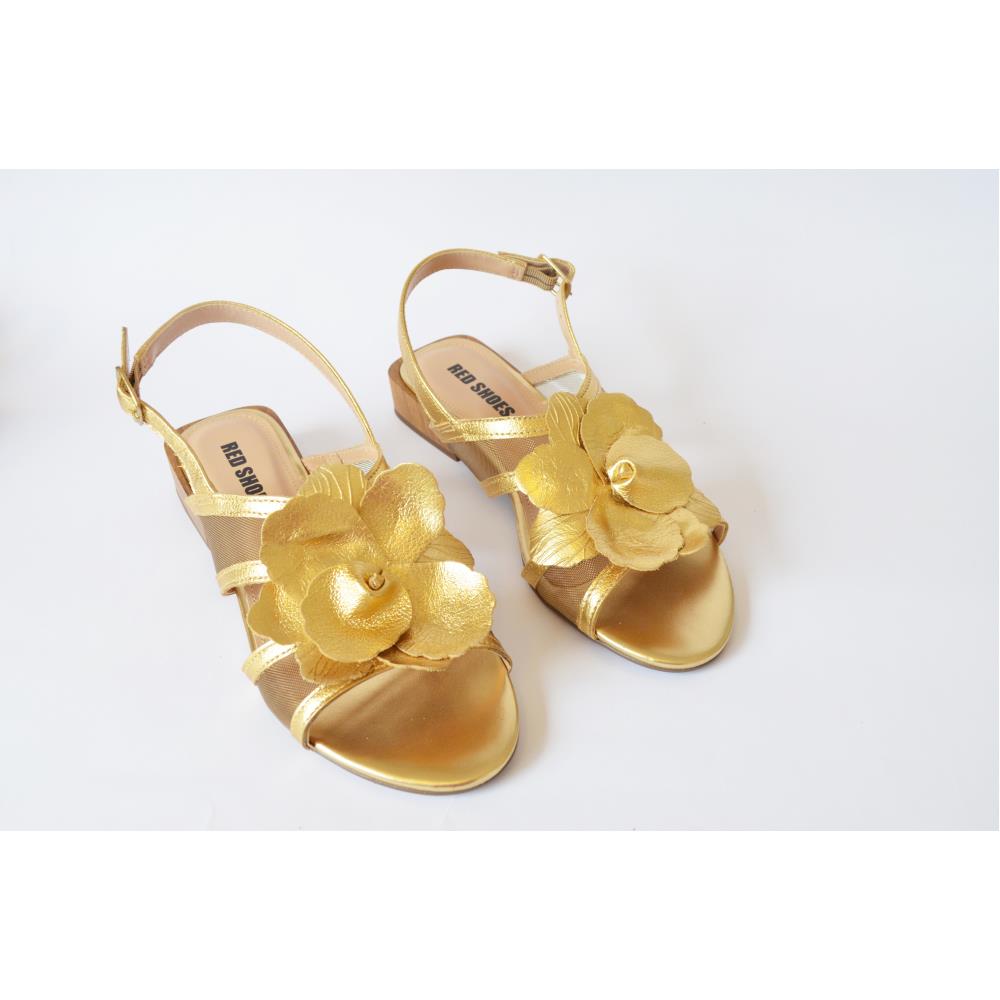 Sandália toda em couro e tela, alça ajustável atras, salto bloco em madeira 4cm. e Flor no centro. Uma super tendência desse verão, que veio para ficar!