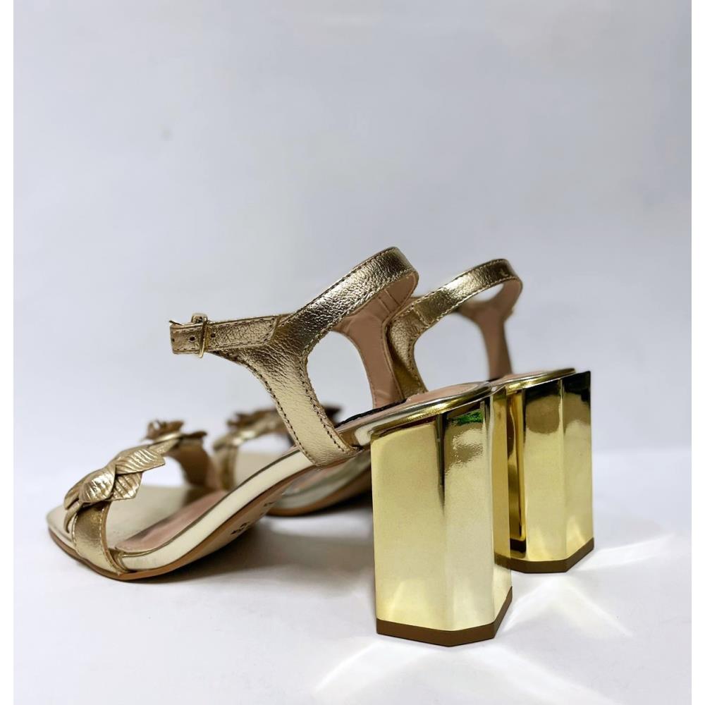 Sandália em couro legítimo na cor dourada. Salto bloco 8cm.