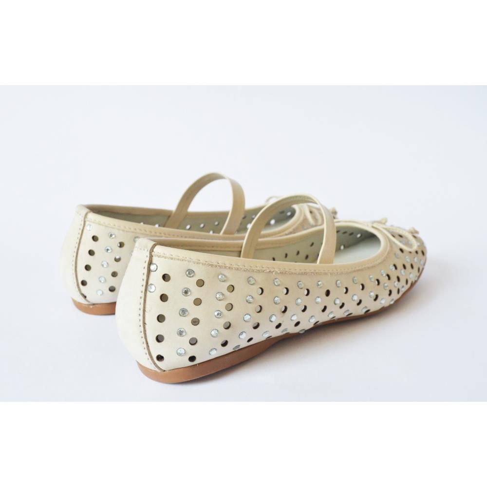 Sapatilha com tachinhas de metais em seu acabamento e com tira única.