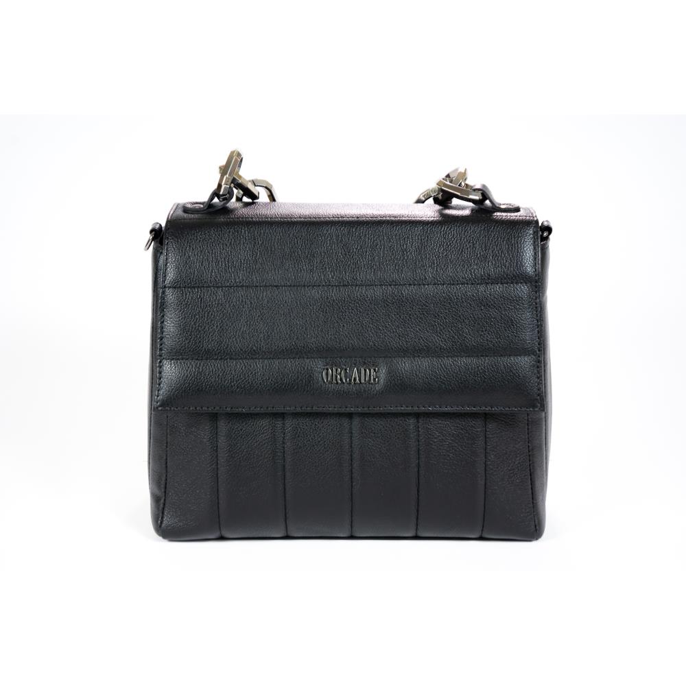 A bolsa toda em couro, extruturada, com estampa em listras grossas. Seu fechamento é em zíper magnético e traz alça de corrente metalizada com possibilidade de regulagem. Tem altura de 18cm, 27cm de largura e 10cm de profundidade.