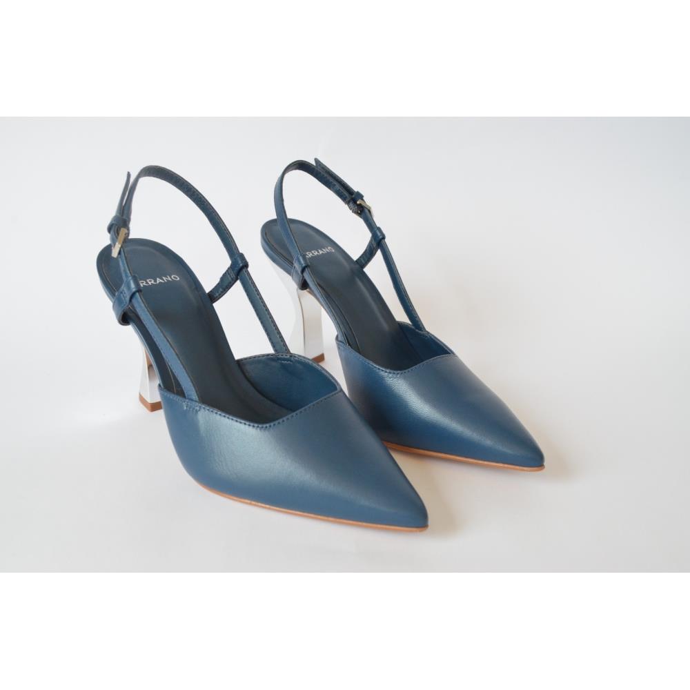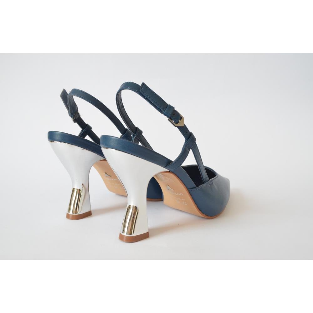 Scarpin slingback de couro. O modelo de salto alto curvado espelhado e bico fino. Acompanha a anatomia do pé, prezando pelo conforto e estabilidade na hora do calce. FEITO EM COURO LEGÍTIMO.