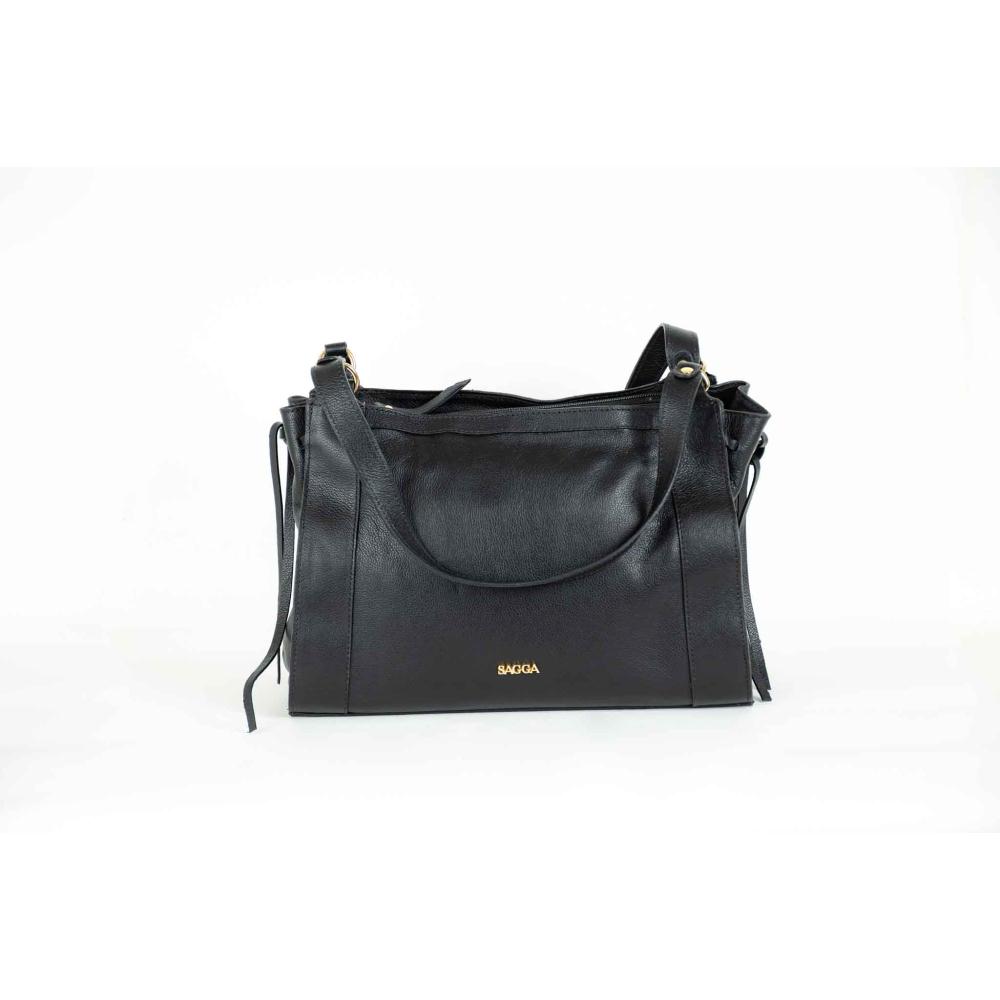 Bolsa em Couro Legítimo Sagga Preto Tamanho G