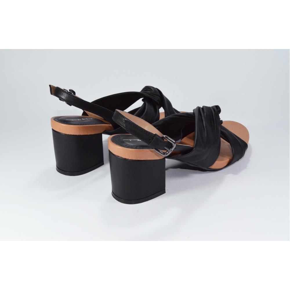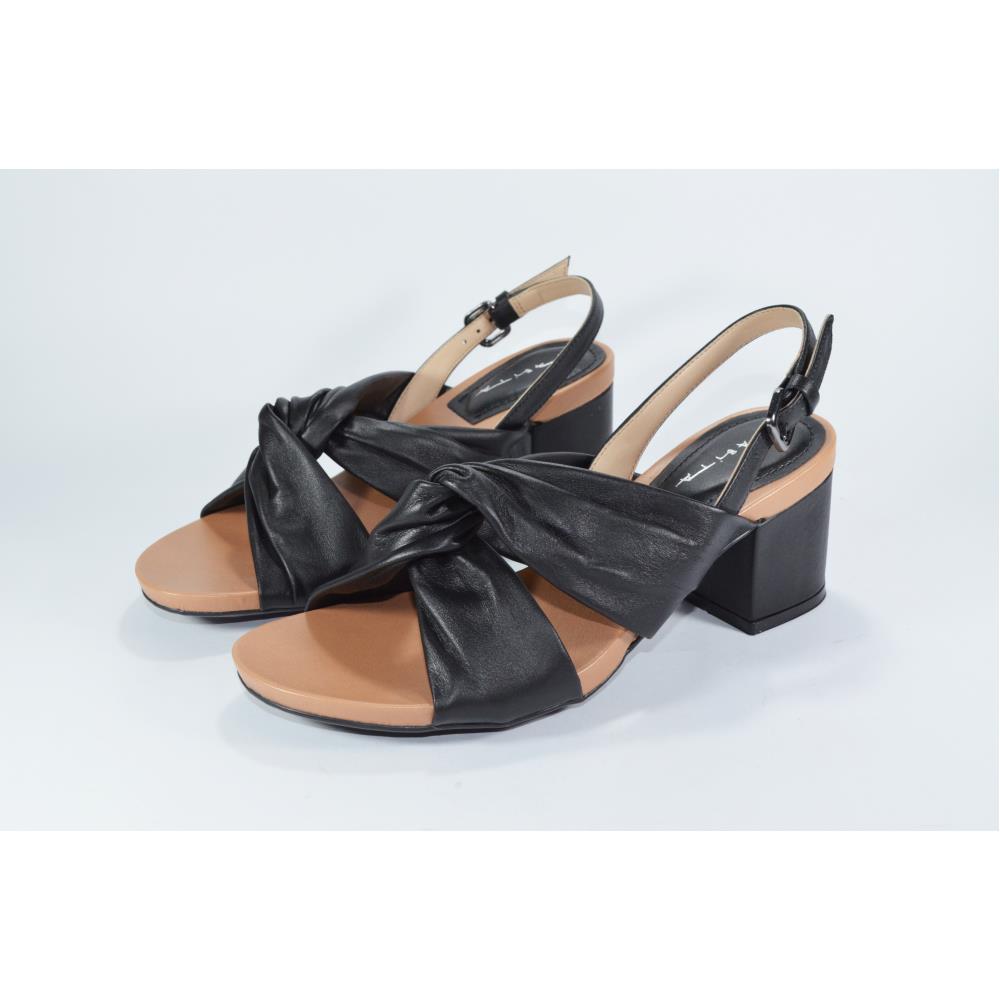 Sandalia em couro legítimo, com alças grossas transpassadas. Salto bloco 7cm.